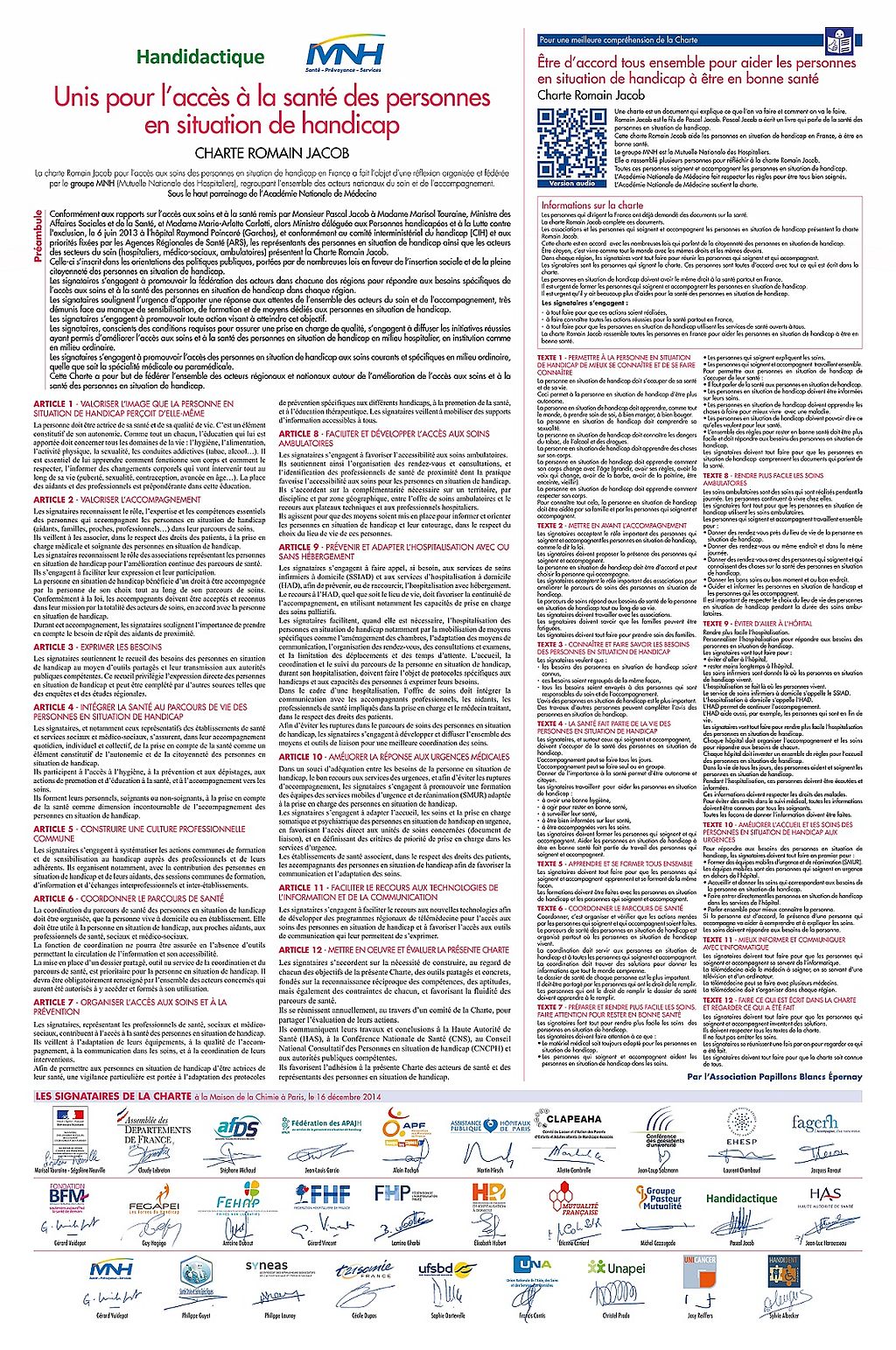 La charte Romain Jacob a été rédigée en 2014 sous l'égide de l'association Handidactique.